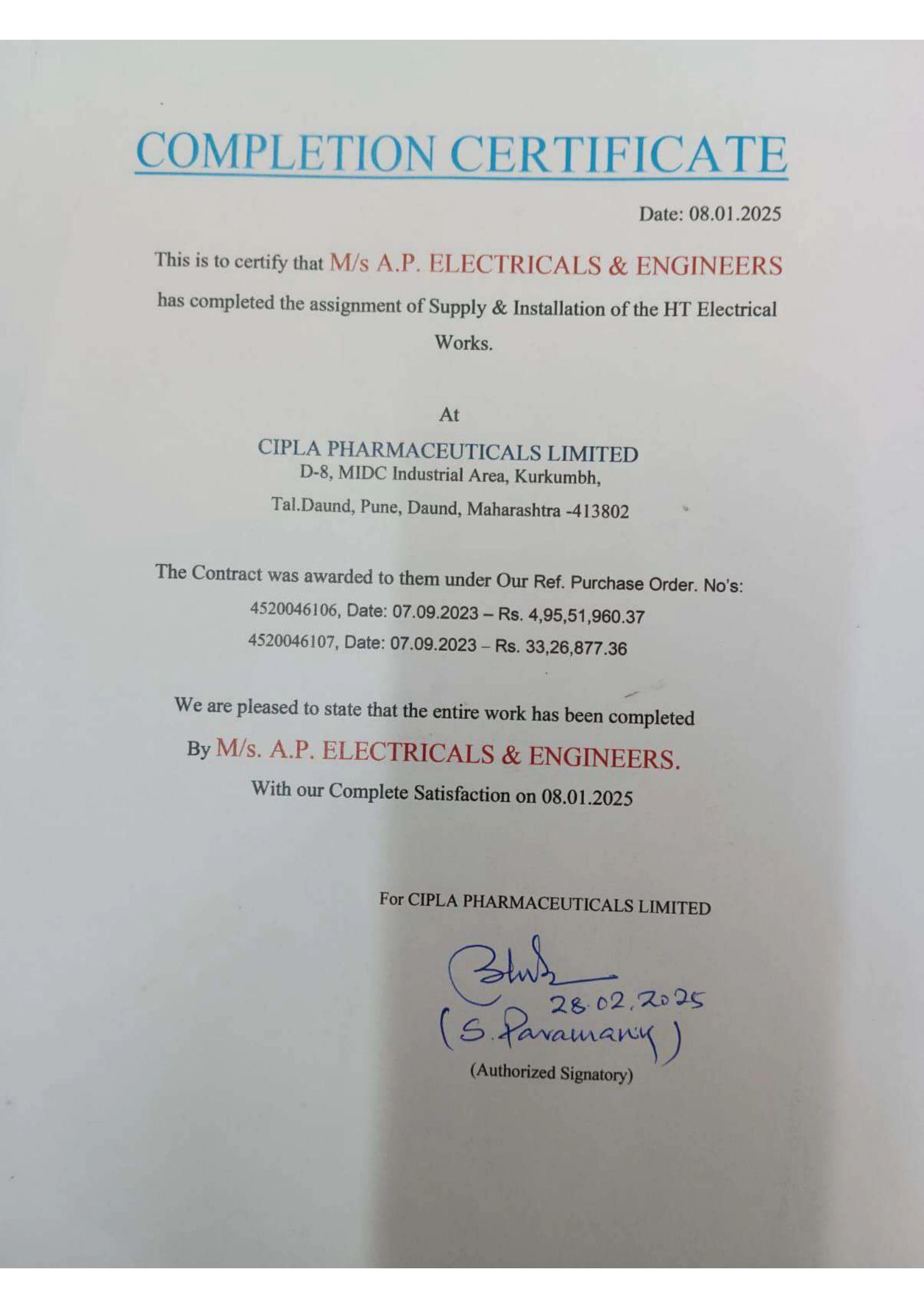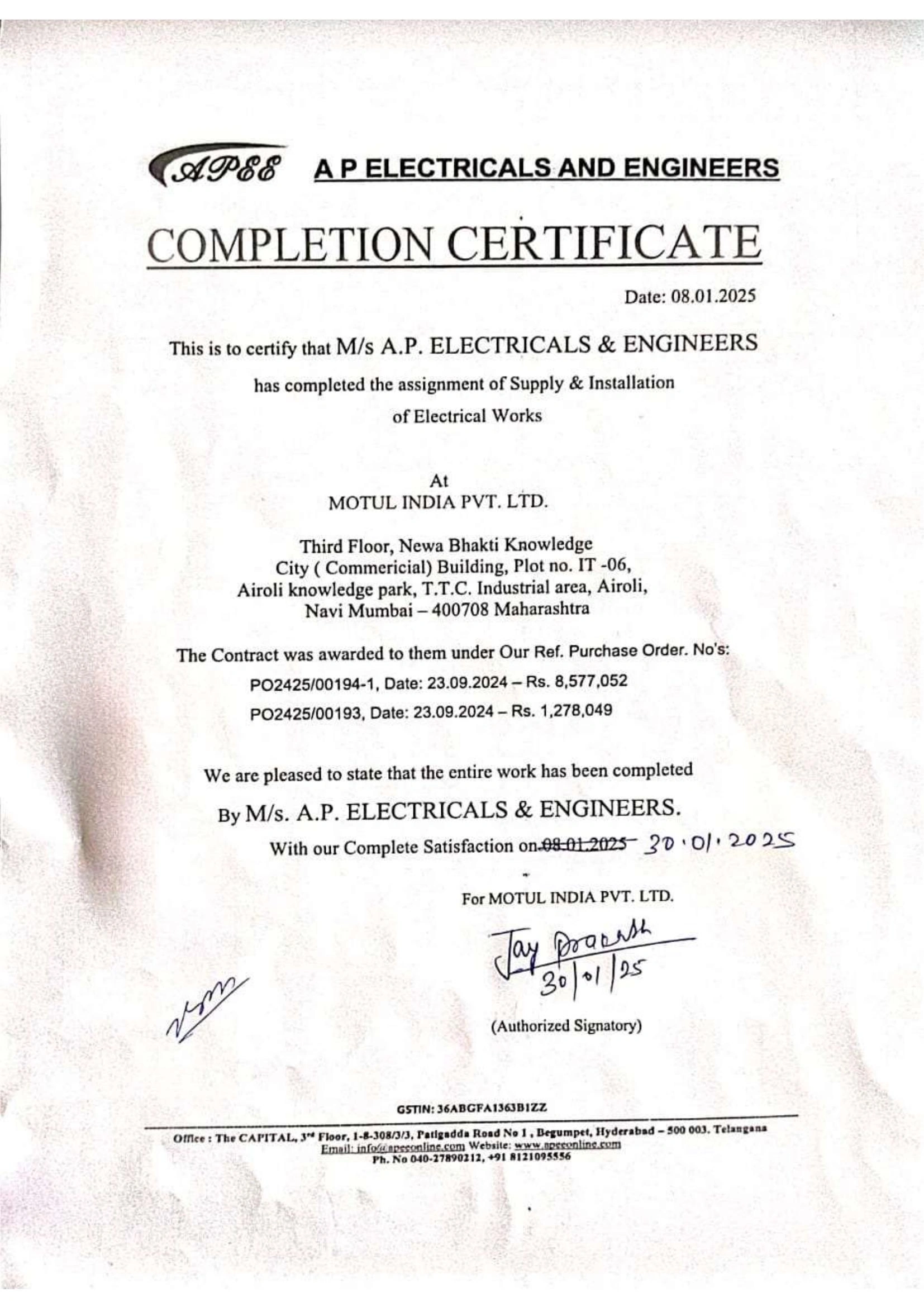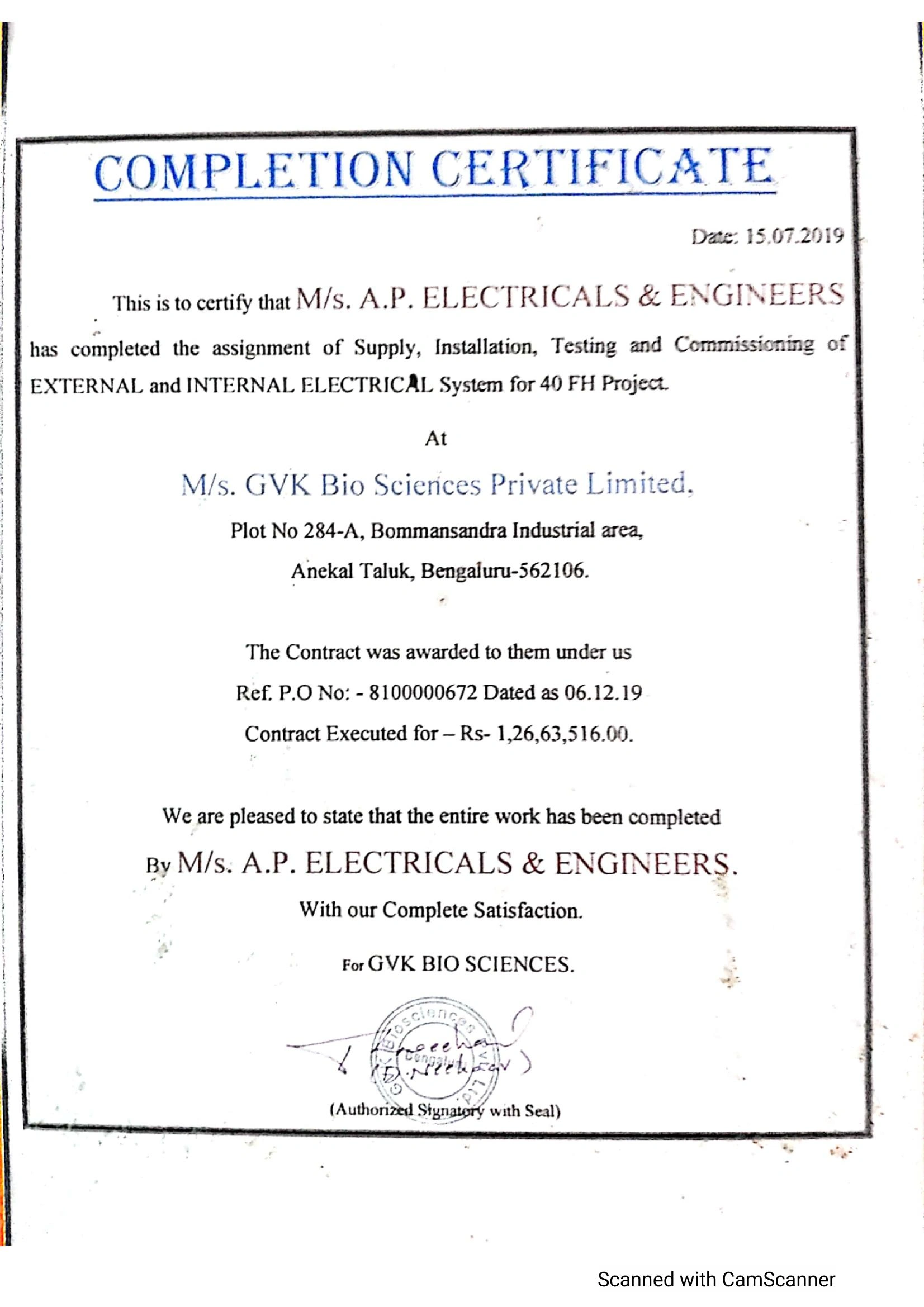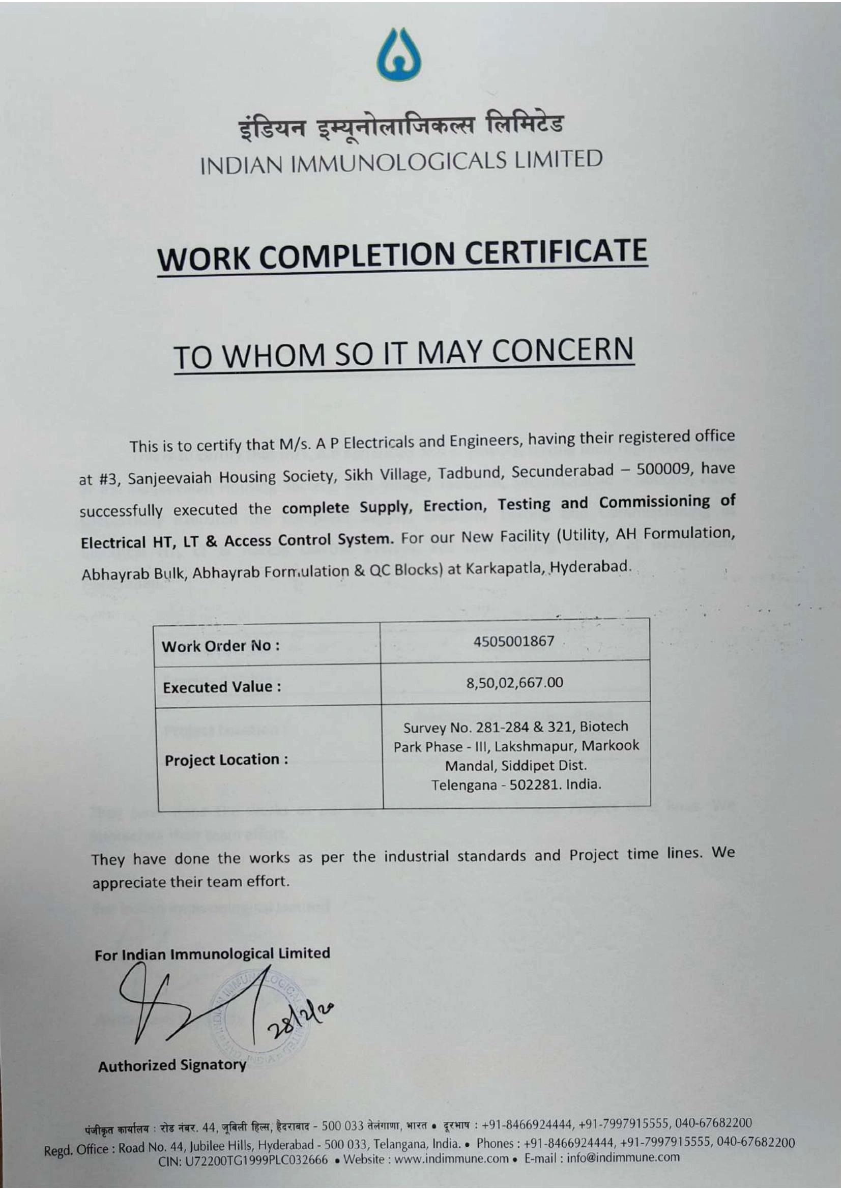 Project Completion Certificates