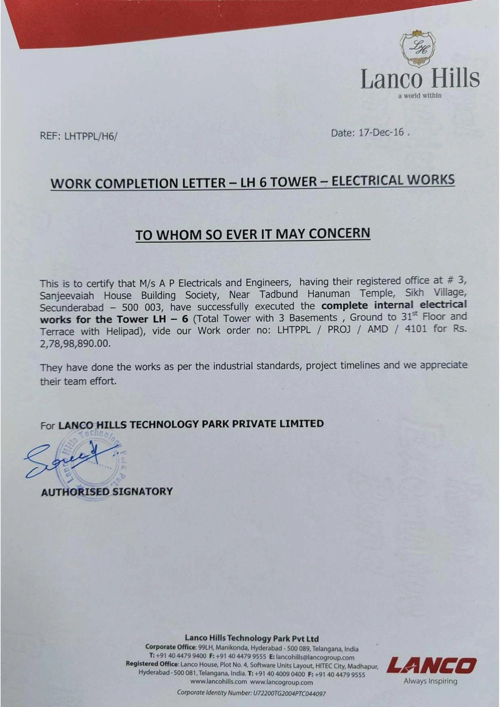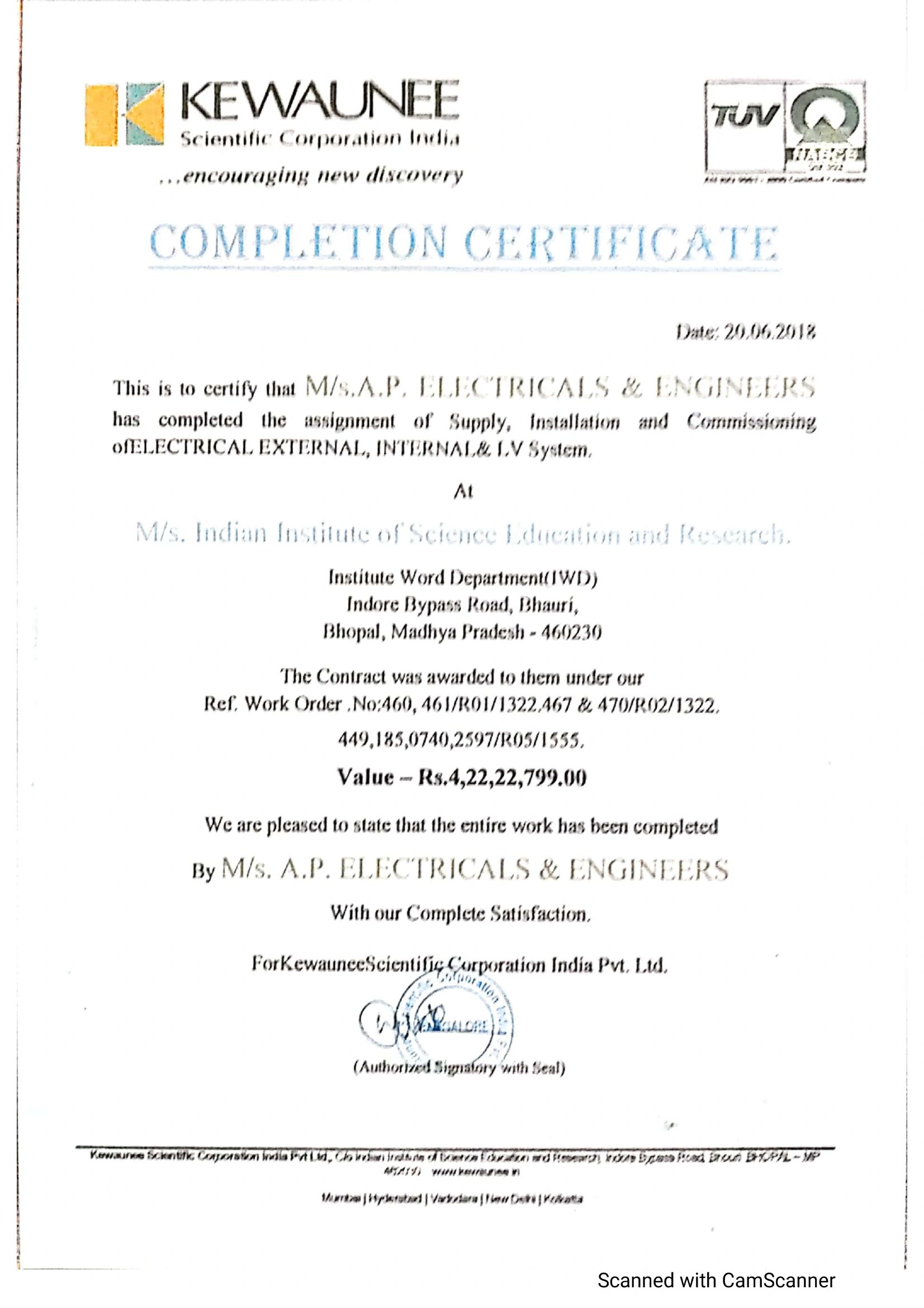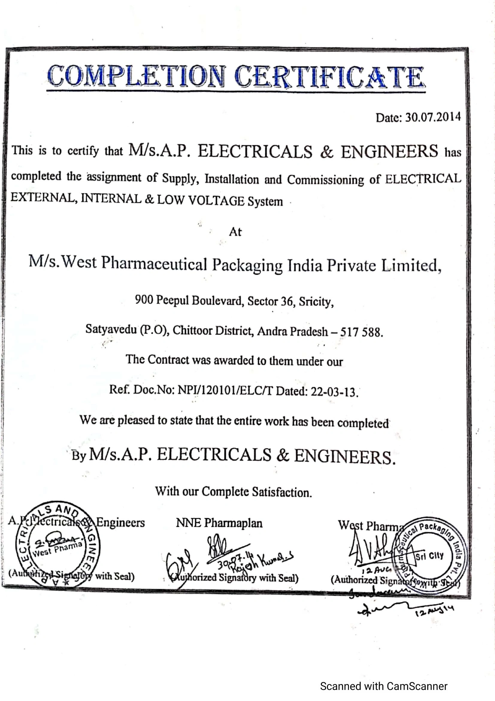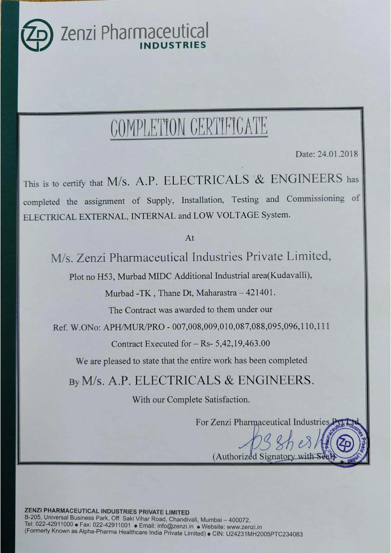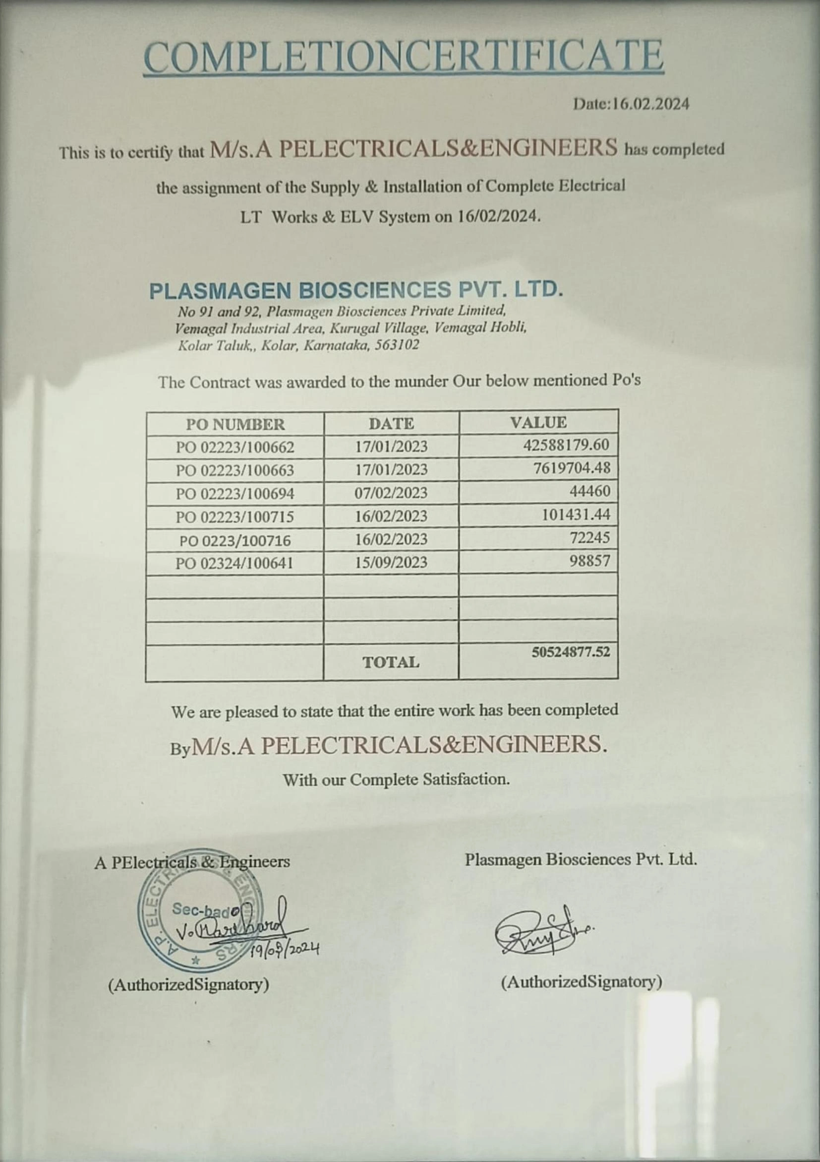 Project Completion Certificates